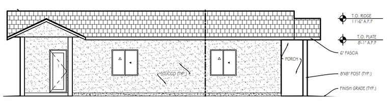 Deliverables: floor plan, foundation plan, exterior elevation, building section, and wall section detail. Designed to IRC standards and local Tucson requirements.